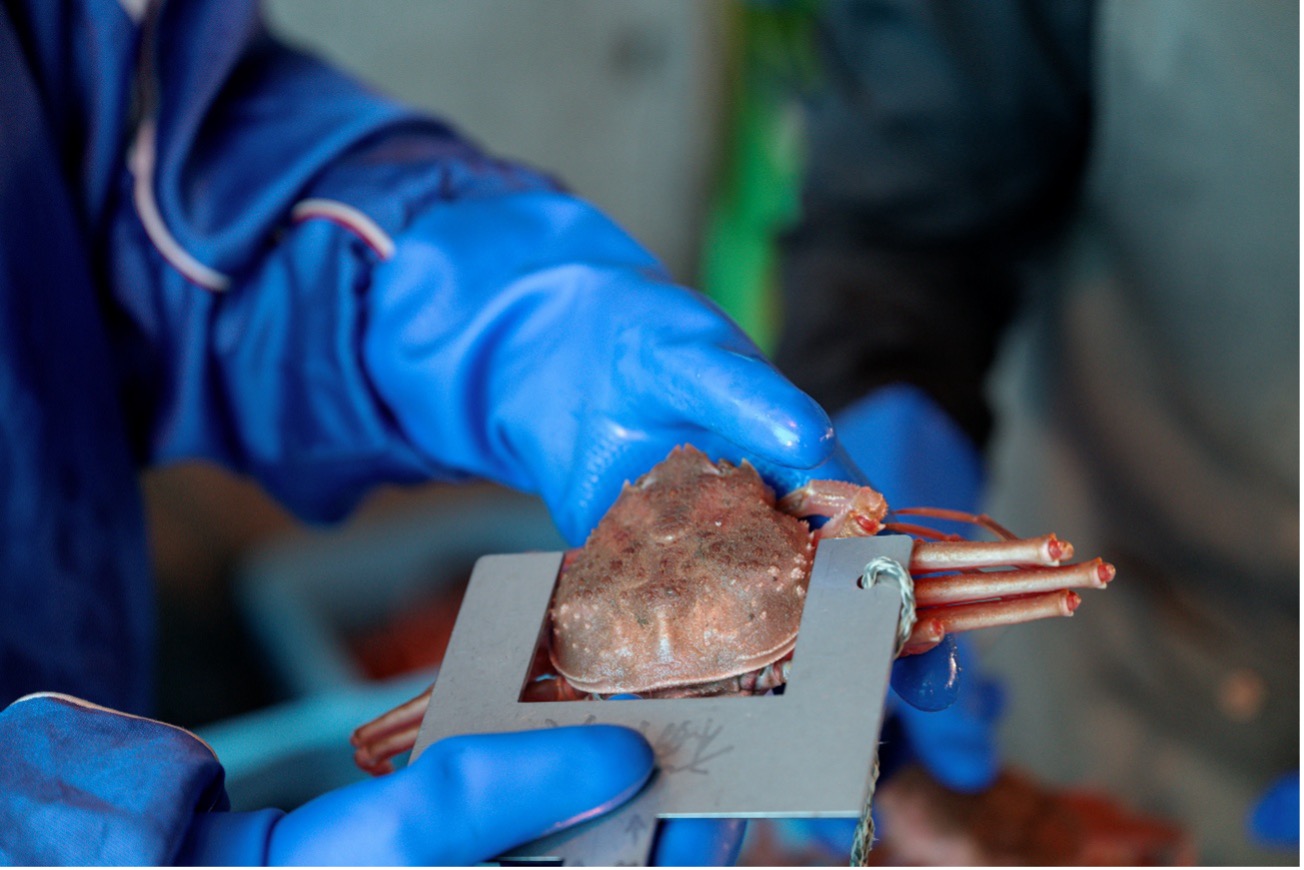 カニは水揚げ後に、すぐに船上で選別が行われます。漁師の指紋がなくなるほど一つひとつ手で触って、甲幅や色は十分か、脚は揃っているか、身がしっかり詰まっているかを見極め、市場に出すに値するカタガニだけが港に集められます。漁師の目に適わなかったものやミズガニ、さらに幼い稚ガニは船の上からすぐさま海にリリース。こうしていいカニだけを港に集めつつ、未熟なカニを獲らないことで、毎年安定した量を獲ることが可能になっているのです。