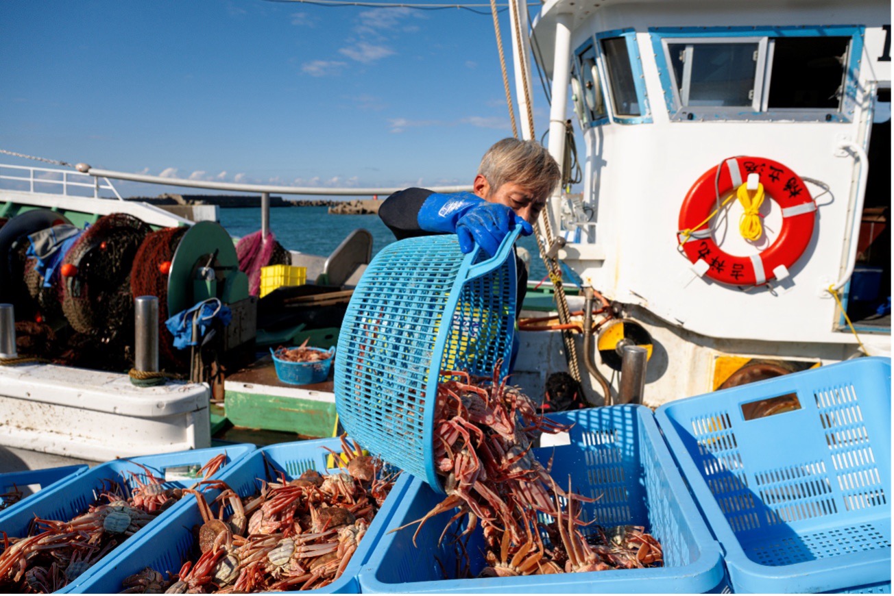 漁師の勘と技、目利きによって、質のいいカニを市場へ。